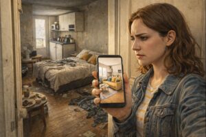 Avec de nombreux retours d’expérience désabusés sur les réseaux sociaux tels que celui-ci : « Tu cliques sur une annonce, tu vois une pièce qui a l’air super lumineuse, super grande, … et une fois sur place ? Une chambre de 10m² où tu peux à peine ouvrir un placard sans bloquer la porte, des proportions bidons, des meubles miniaturisés, des perspectives impossibles, parfois même des fenêtres ou des murs qui n’existent pas dans la réalité ».